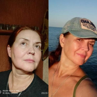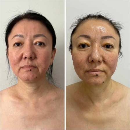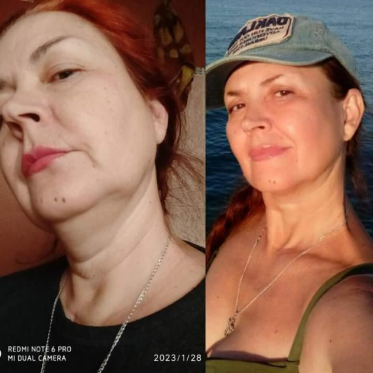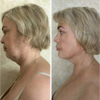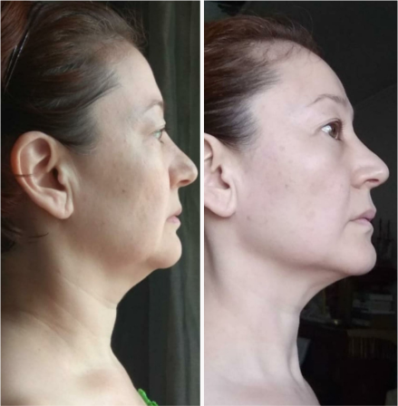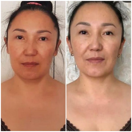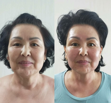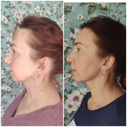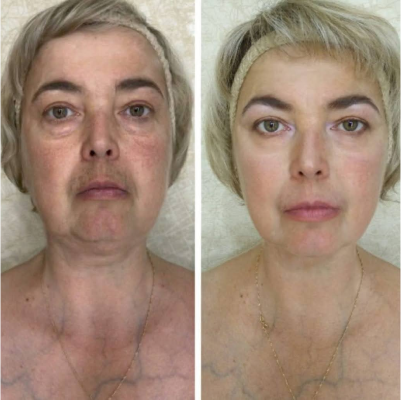 Лицо в целом подтянулось, расправилось, центр лица стал шире, линия овала мягче. Брыли, носогубки уменьшились