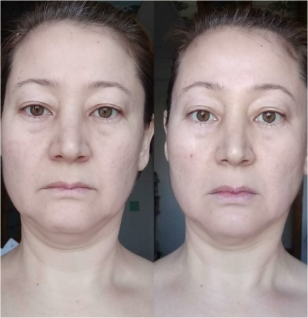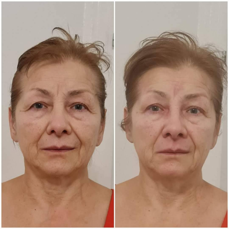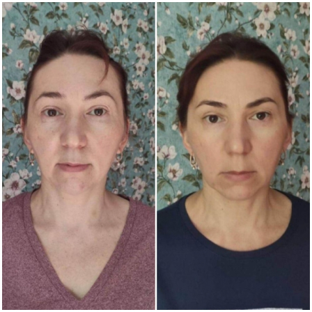 Уменьшилась межбровка, носогубки стали менее выражеными, морщины возле губ стали меньше