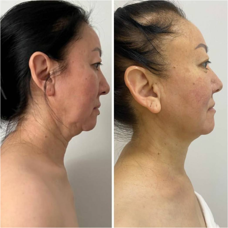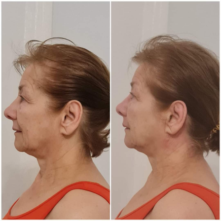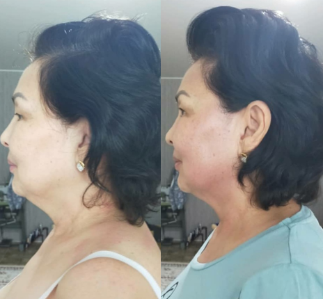Холка уменьшилась, шея стала ближе к своему природному положению, уменьшились морщины на шее, лицо выглядит свежим и отдохнувшим
